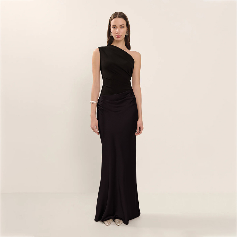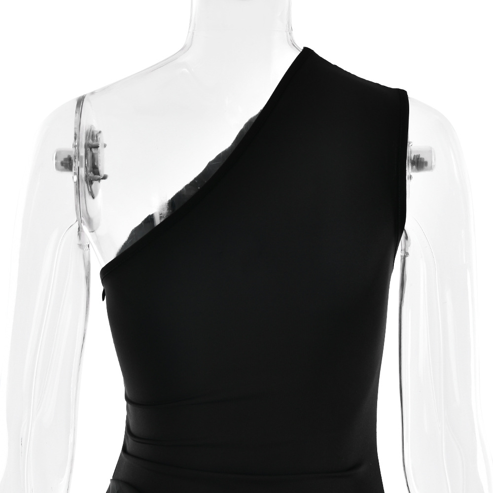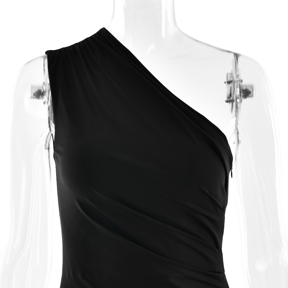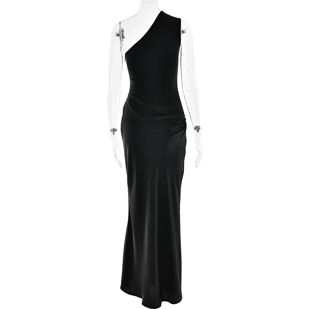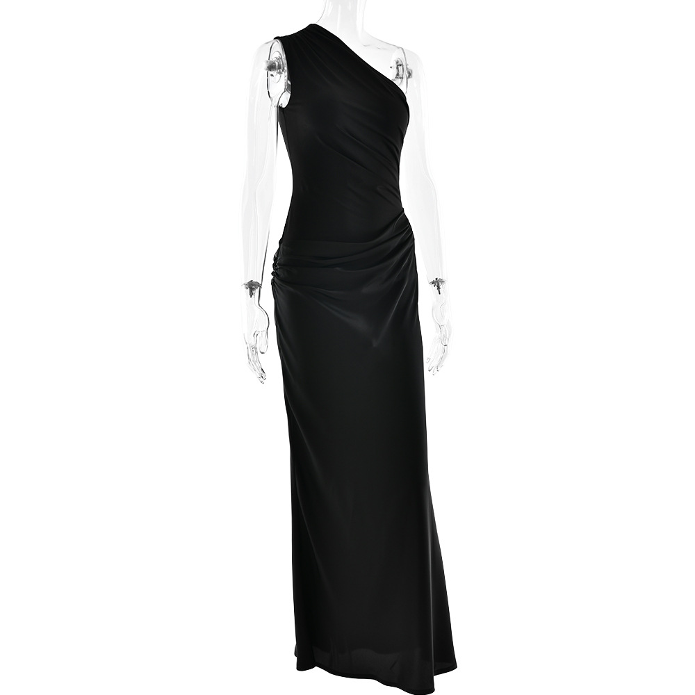 One-shoulder slim-fitting one-shoulder dress, sexy hip-wrapped dress.