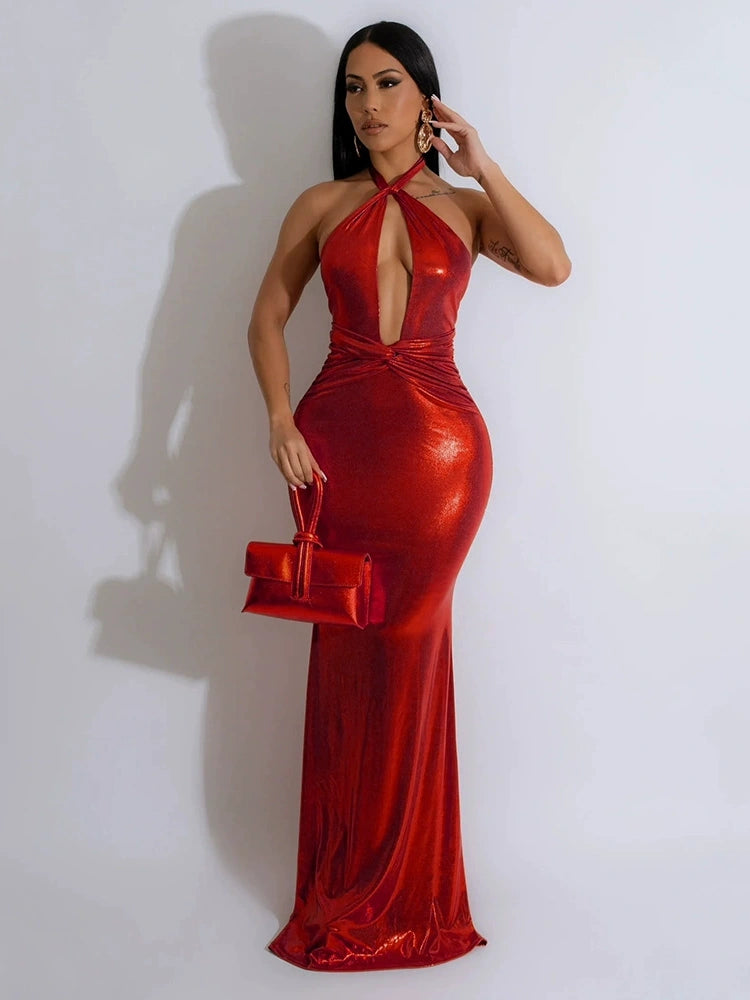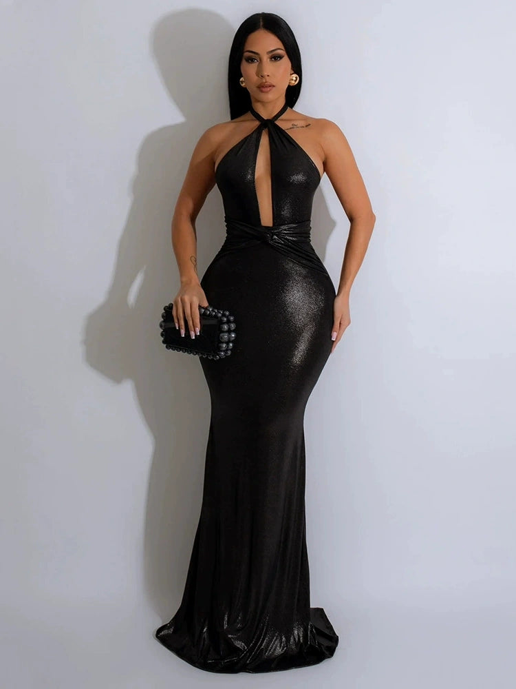The Ace Of Spades Halter Maxi Dress80 is a stunning piece that combines elegance and allure. This dress features a halter neck design, which beautifully frames the shoulders and neck, adding a touch of sophistication. The maxi length elongates the silhouette, creating a graceful and flowing look.