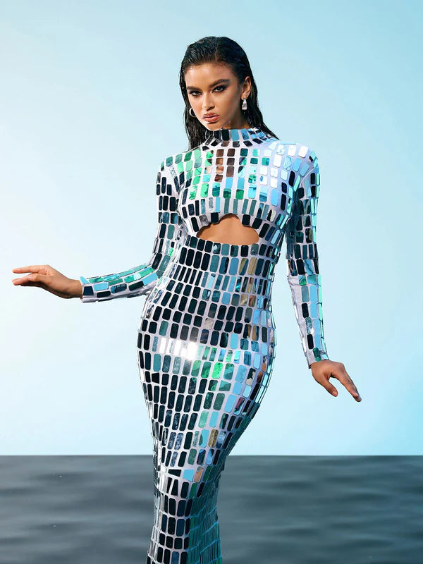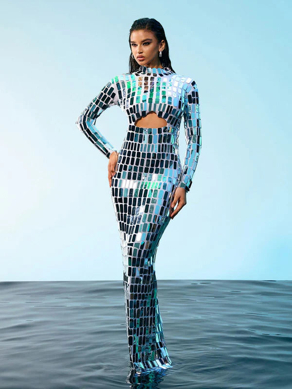 Elevate your fashion game with the Rumi Arcylic Embellished Cutout Maxi Dress. This stunning dress features intricate embellishments and eye-catching cutouts, making it perfect for any special occasion. Step into style and turn heads with this must-have piece in your wardrobe.