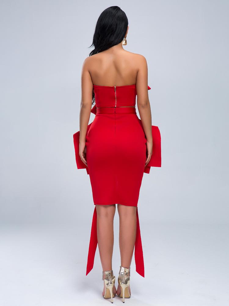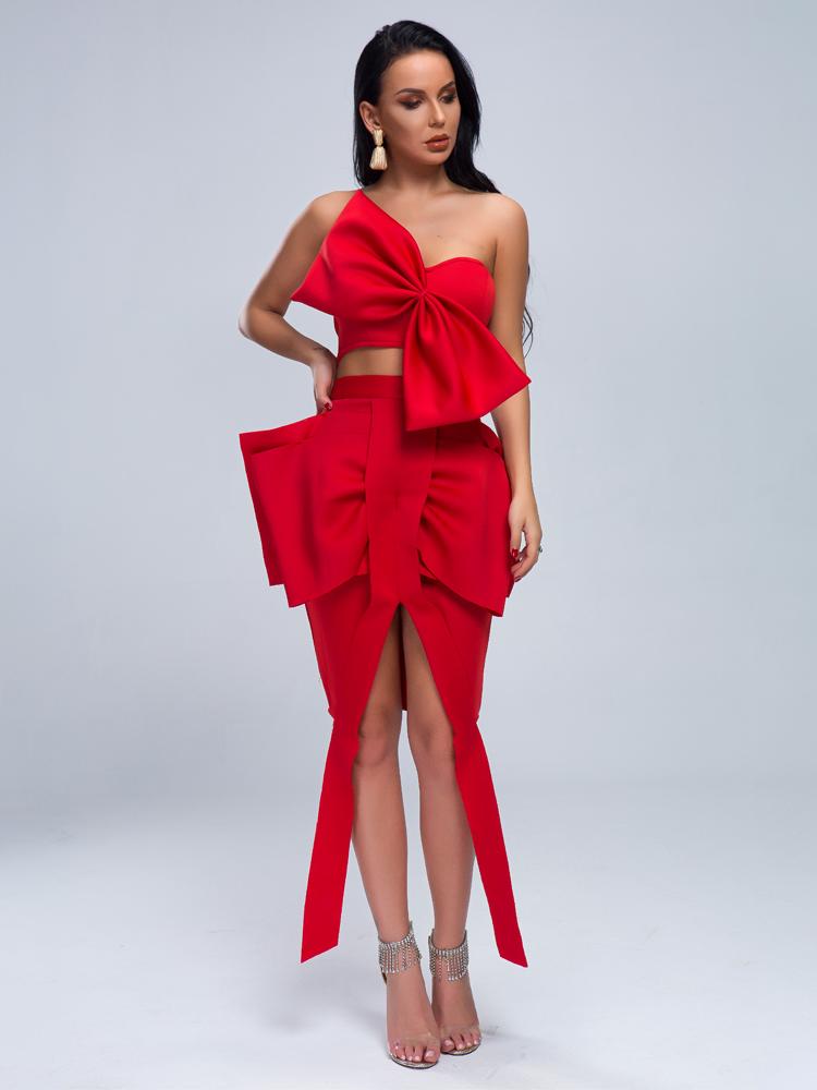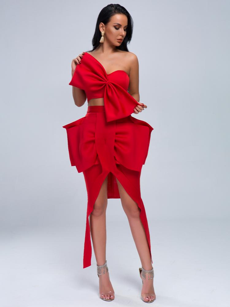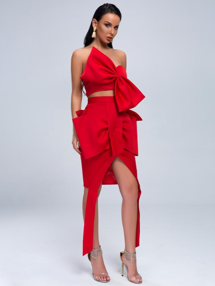 This Bandeau Wrap Set features an eye-catching irregular skirt paired with a chic bandeau top, creating a bold yet elegant silhouette. Perfect for making a statement, it adds a touch of modern flair to any outfit.