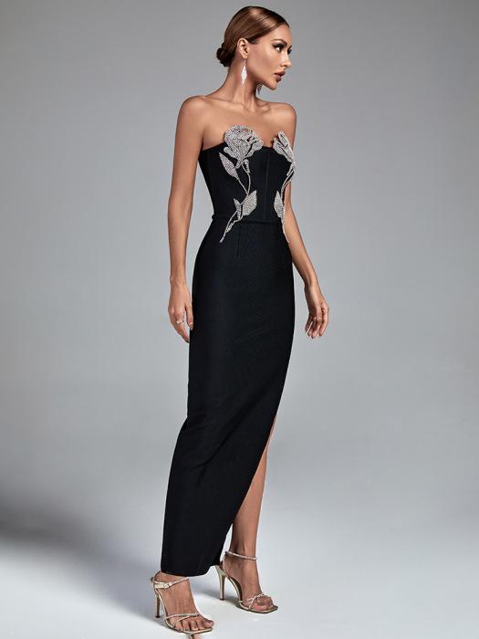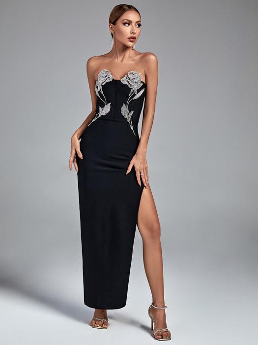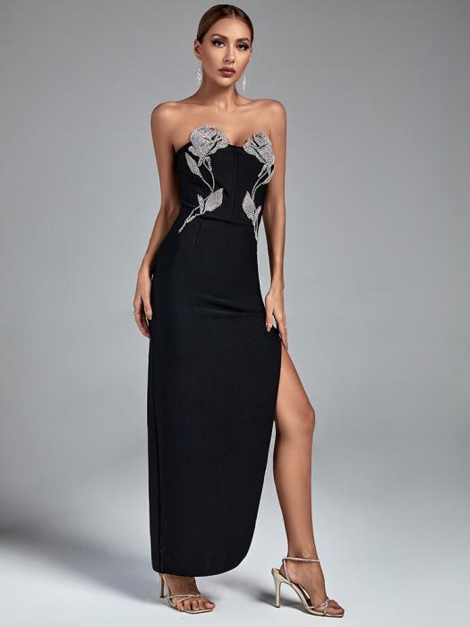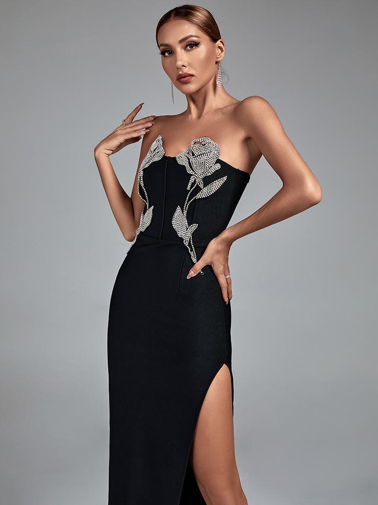 Black Sheath Bandage Gown with Rhinestones