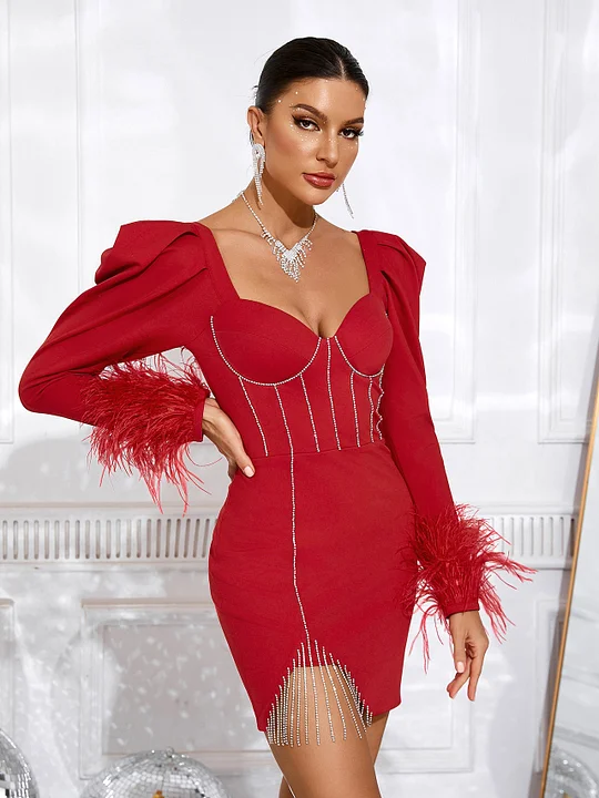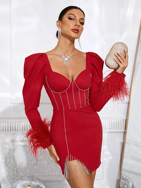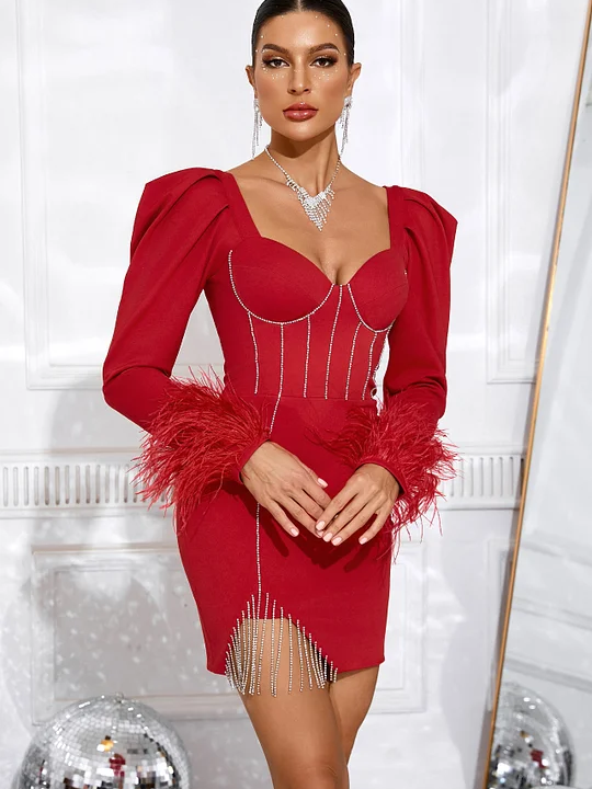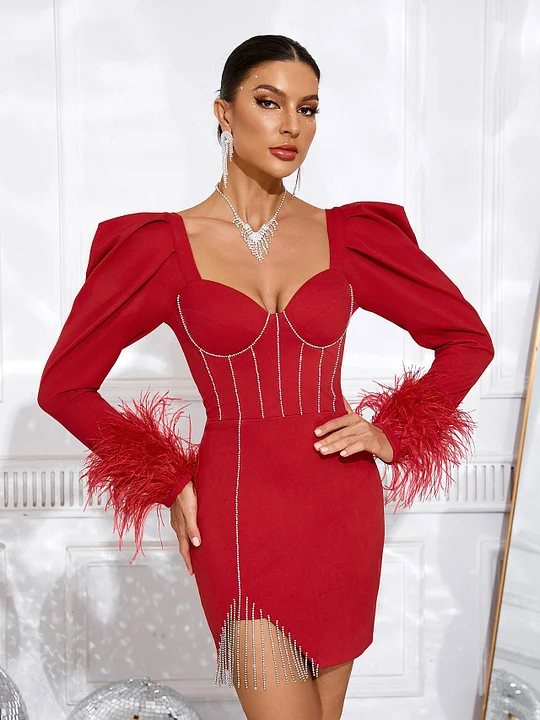 The Red Feather Split Studded Chain Fringe Dress sounds incredibly bold and stylish! The combination of feathers, studs, and fringe creates a stunning look that’s perfect for making a statement at any party. The split adds an alluring touch as well.
