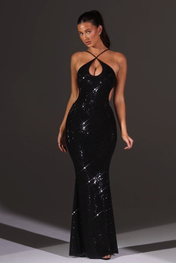 Embellished Cut-Out Halterneck Gown Evening Dress