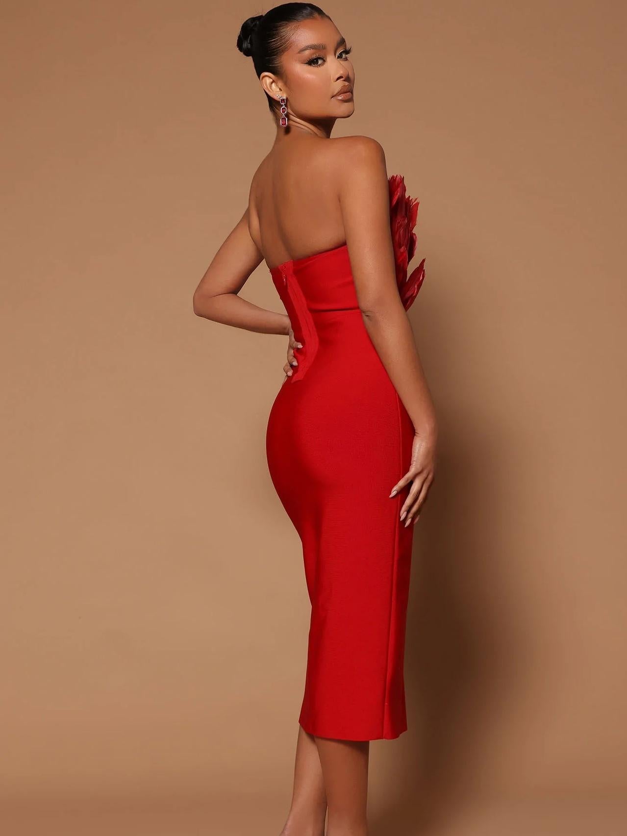 Feather Backless Slimming Mid-Length Bandage Dress