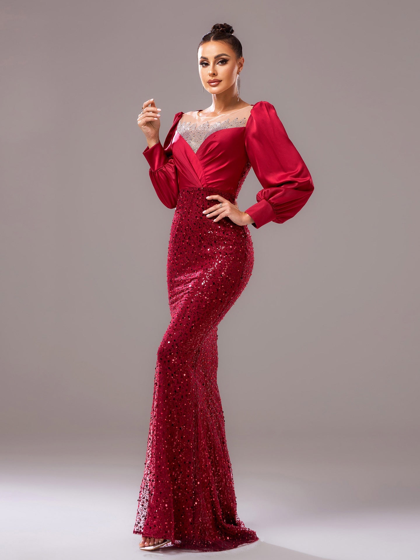This Chic Long Sleeve Round Neck Formal Party Bodycon Beaded Sequin Evening Dress Women Bridesmaid Gown Design Made Of Good Quality Polyster And Spandex Material, Which Is Stretchy, Durable And Comfortable. The Long Evening Dresses And Gowns Is Always The Mainly Choice For All Kinds Of Parties, Cocktail, Prom, Events, And Dating Occasions. Evening Gowns At The Little Connection Comes With Huge Selections - Sequins, Beaded, Satin, Velvet, Lace.... When You Need Wholesale Evening Dresses, The Little Connection Wholesale Women Garment Online Shop Is Your One-Stop Online Shopping Choice.