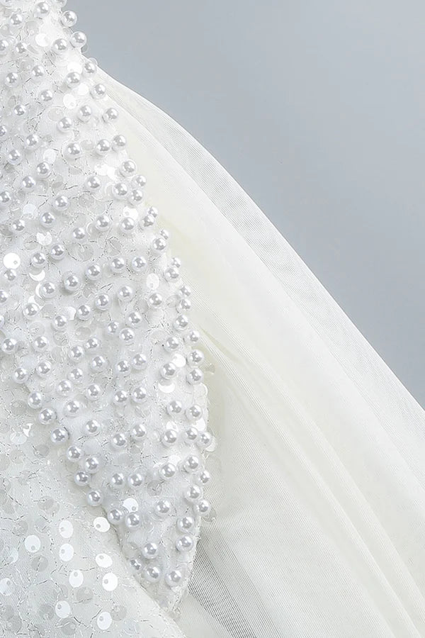 Graceful Pearl High Neck Long Sleeve Cutout Split Sequin Evening Maxi Dress
