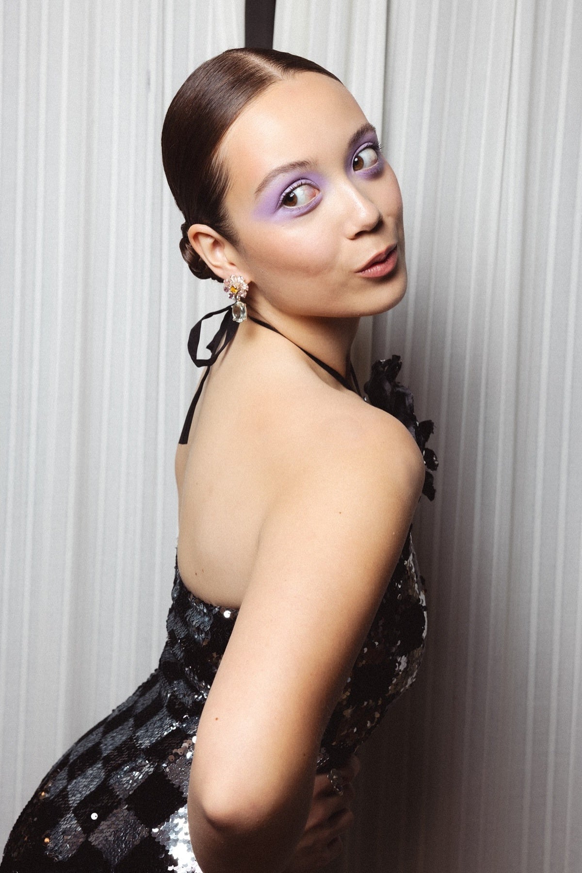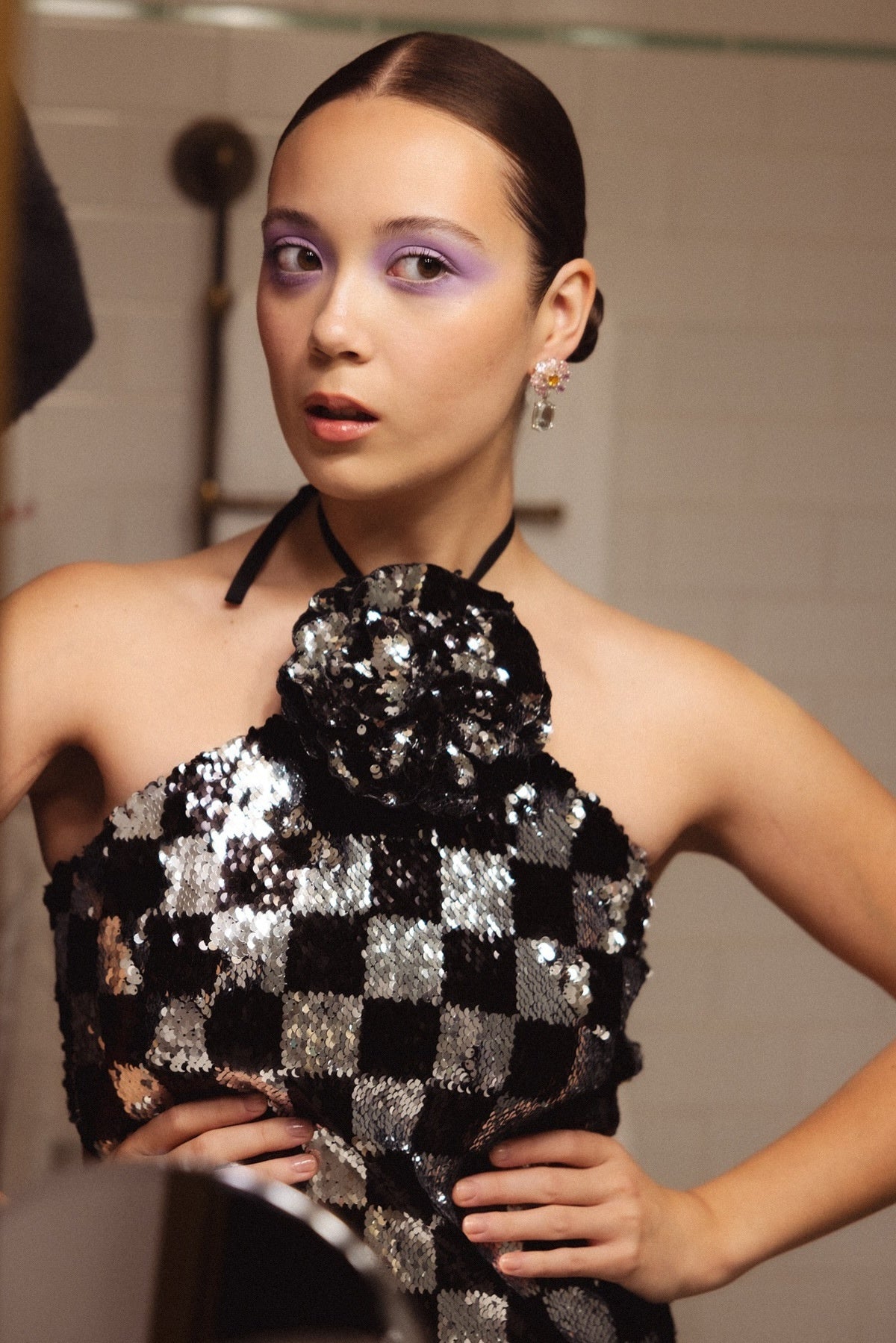 Halter Neck Sequin Checkered Maxi Dress Gown