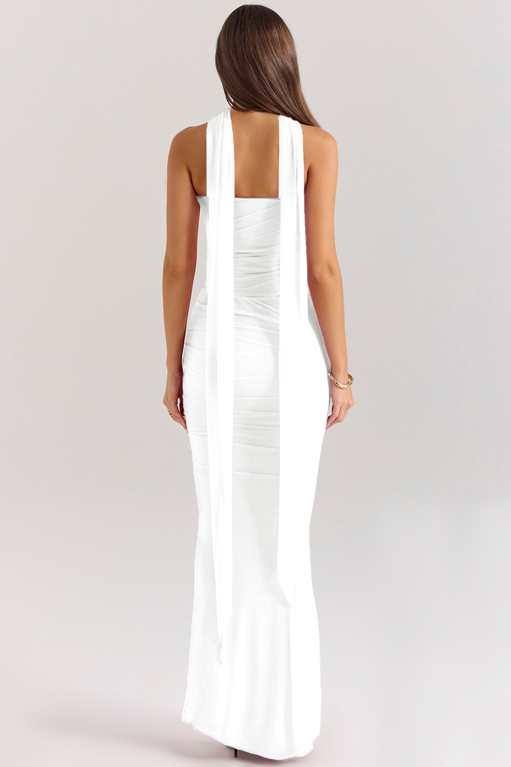 Strapless Corset Top with Detachable Neck Scarf Gown