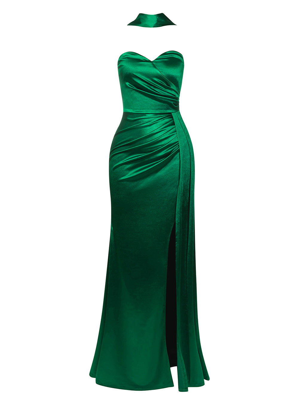Minimalist Halter Neck Long Slim Fit High Slit Maxi Dress