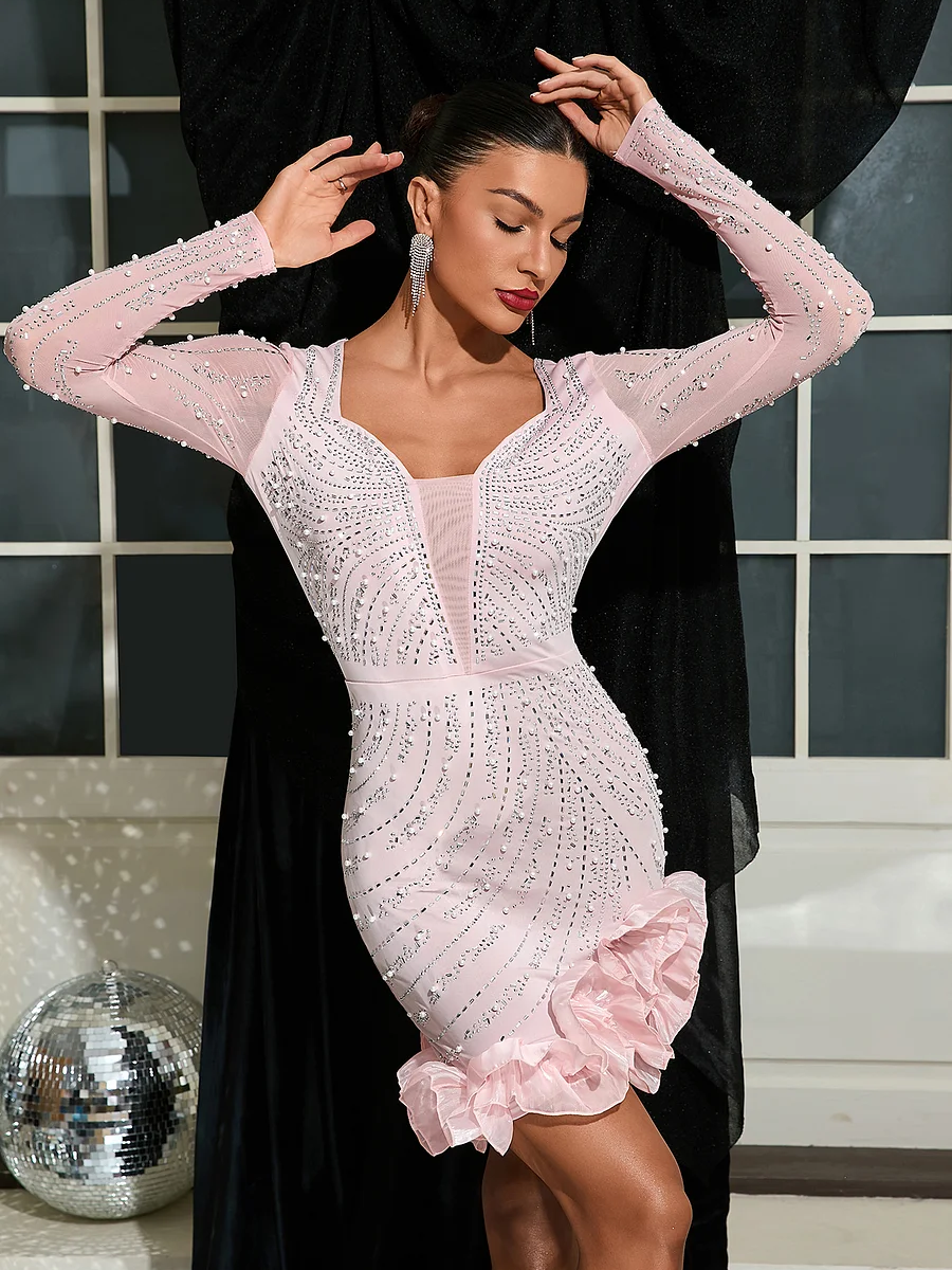 This square neck rhinestone foam beaded dress is a dazzling statement piece. Featuring a chic square neckline, it beautifully highlights the collarbone while the intricate beadwork adds a touch of glamour. The foam beads create a unique texture, enhancing the dress's visual appeal. Perfect for evening events or special occasions, this dress promises to turn heads. Pair it with elegant heels and minimal accessories to let the dress shine and showcase your sophisticated style.