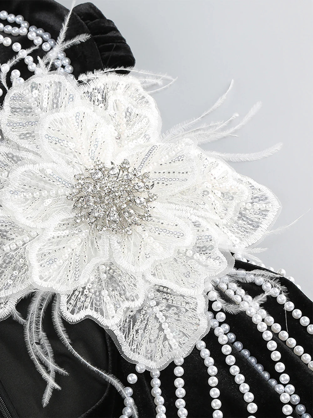 The One Shoulder Long Sleeve 3D Flower Maxi Dress is a captivating fashion statement that blends elegance with a bold, unique twist. Featuring a striking one-shoulder design, this dress showcases a single bare shoulder while the other is adorned with a long, flowing sleeve. The highlight of this piece is undoubtedly the intricate 3D flower detailing, which adds a touch of whimsy and romance to the ensemble.
