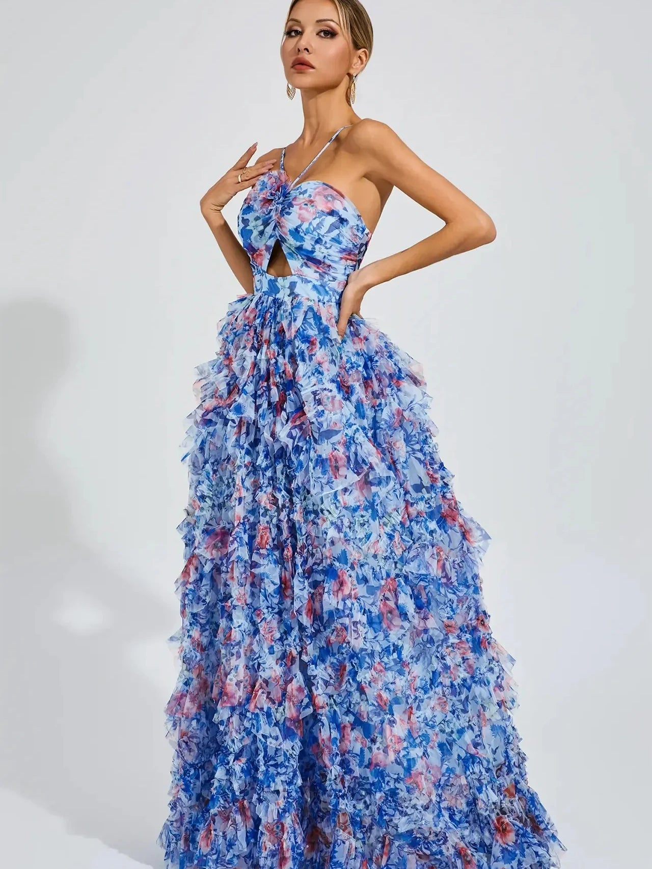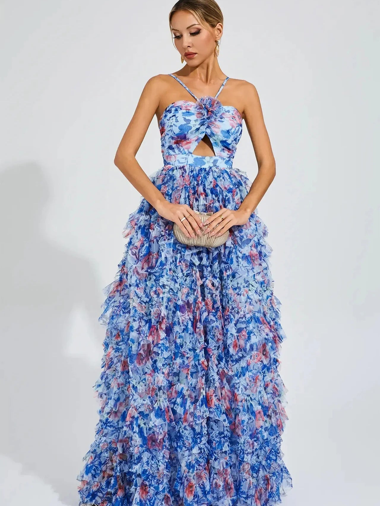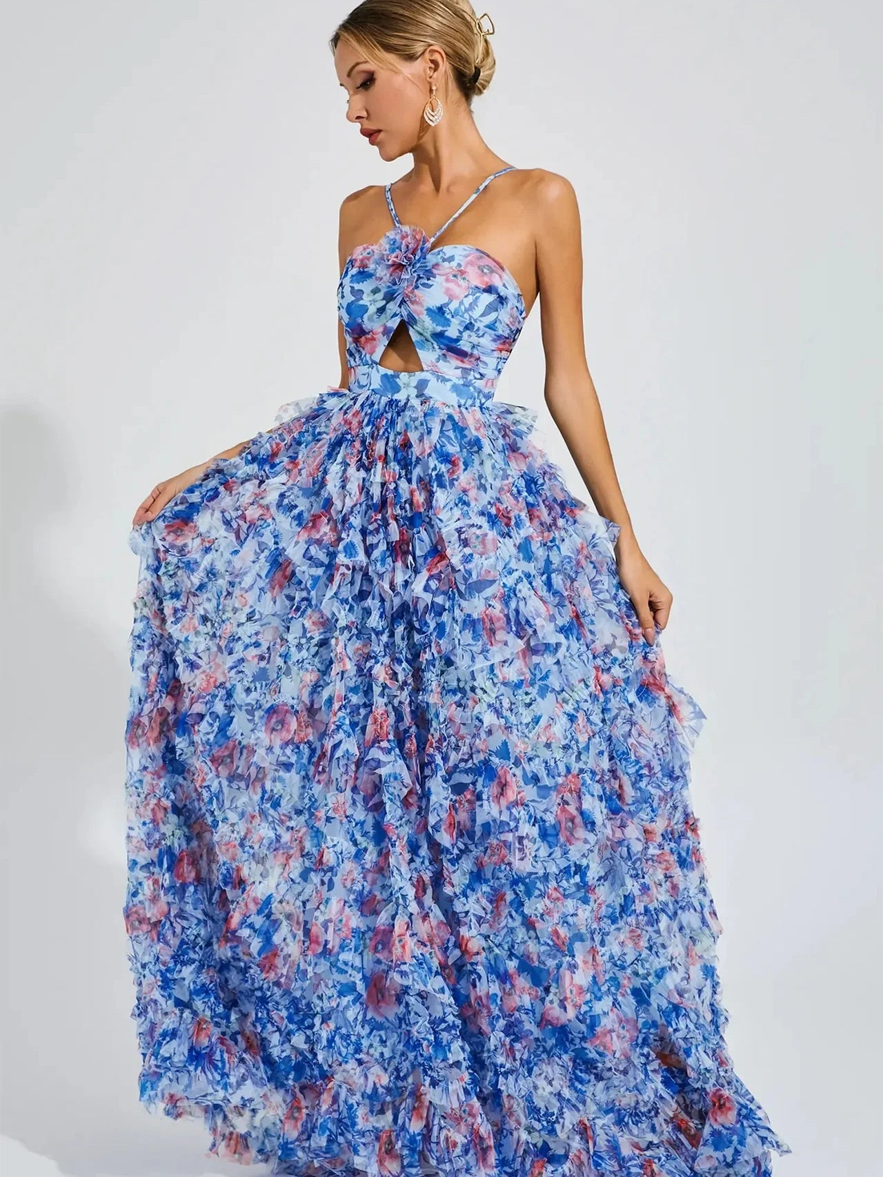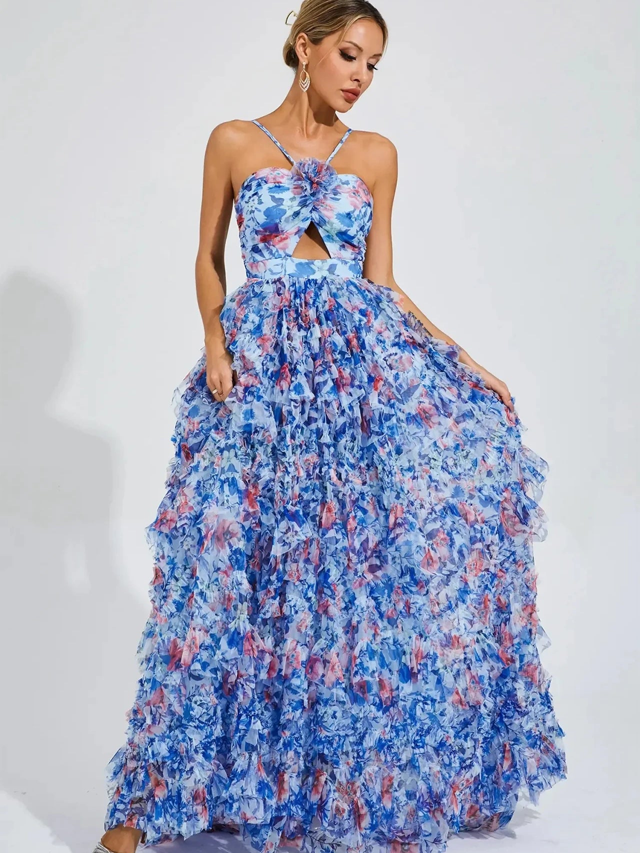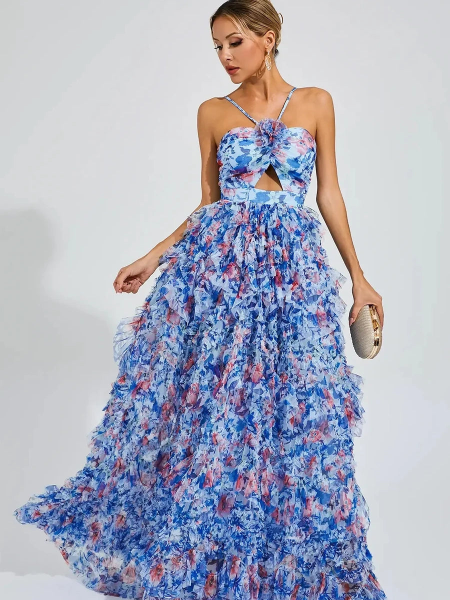 The organza floral-embellished halter dress is a dreamy addition to any wardrobe. Its delicate fabric and intricate pleats create an ethereal silhouette, perfect for special occasions or summer outings. The halter neckline elegantly frames the shoulders, while the floral details add a touch of whimsy. Lightweight and flowy, this dress allows for easy movement and comfort. Pair it with strappy sandals and minimal accessories to let the dress shine, making you the center of attention wherever you go.