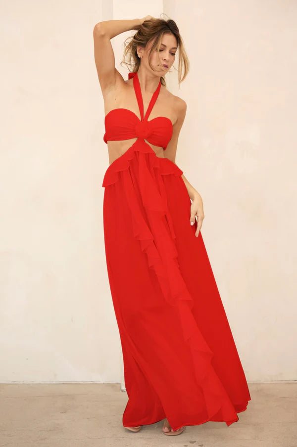 Rosette Cut-Out Maxi Dress