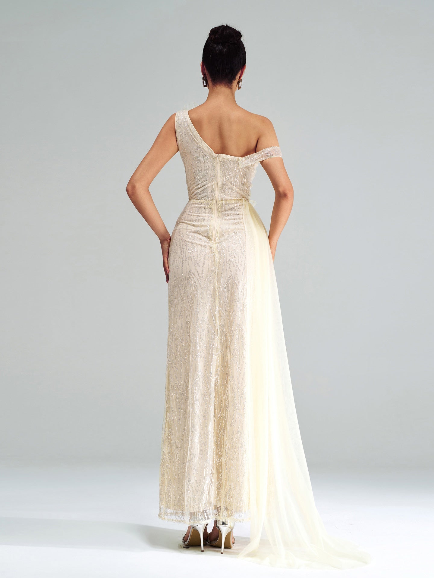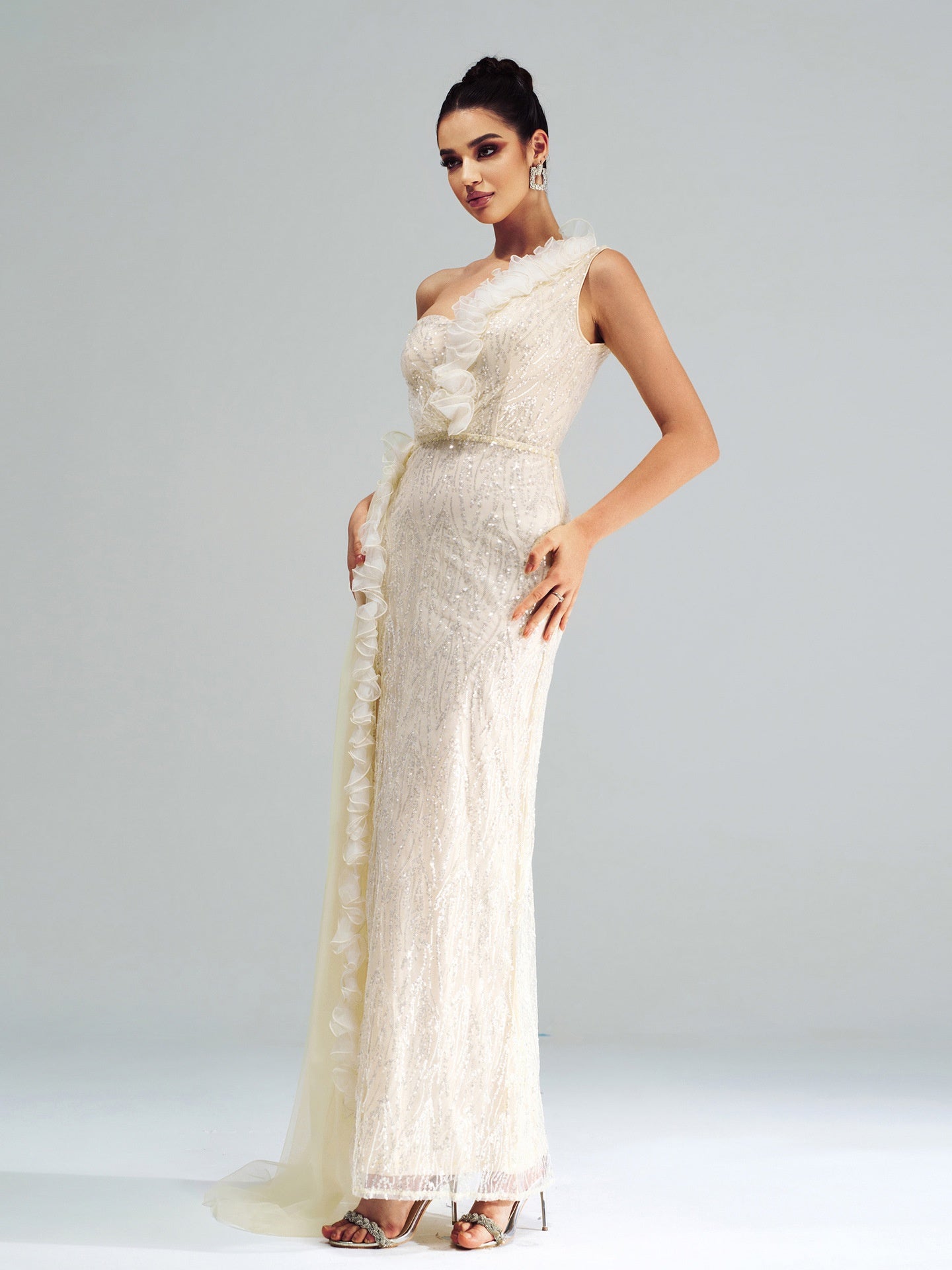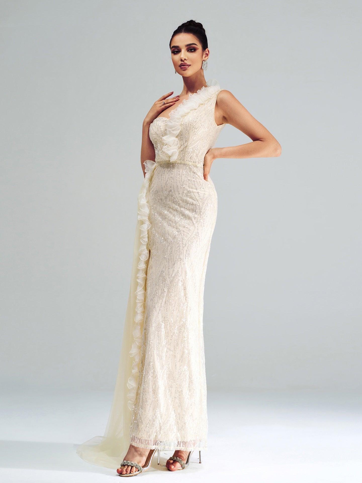 Sleeveless Asymmetric Neck Banquet Evening Gown