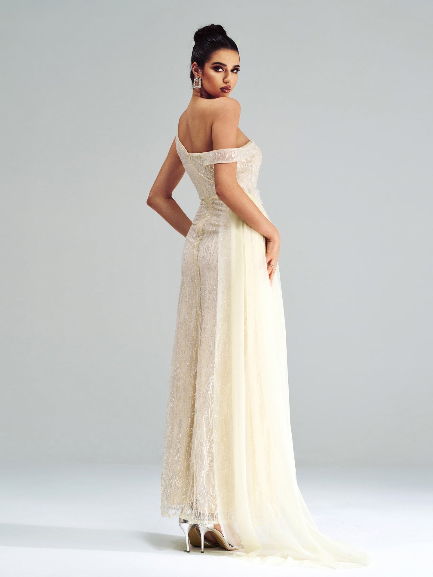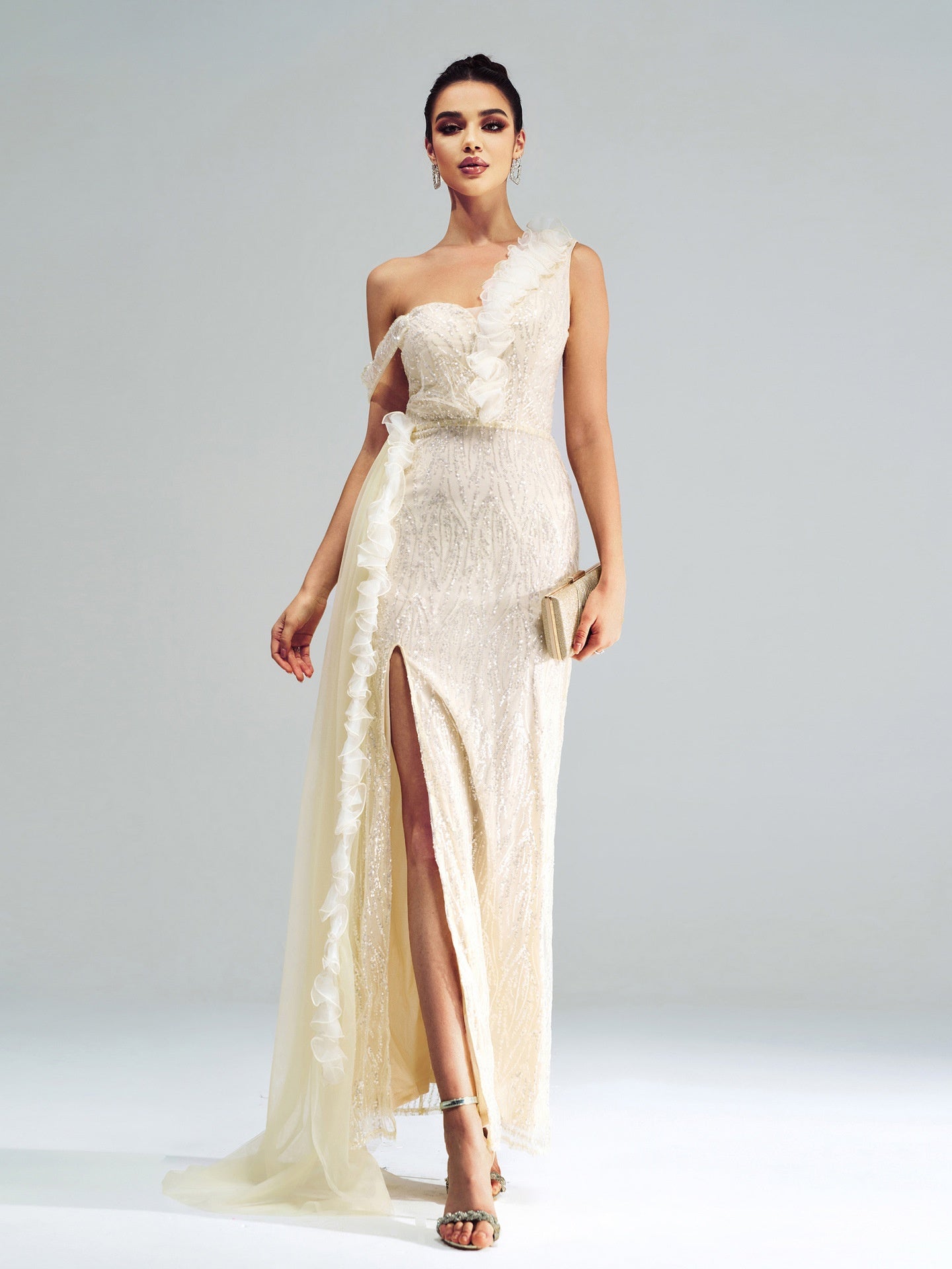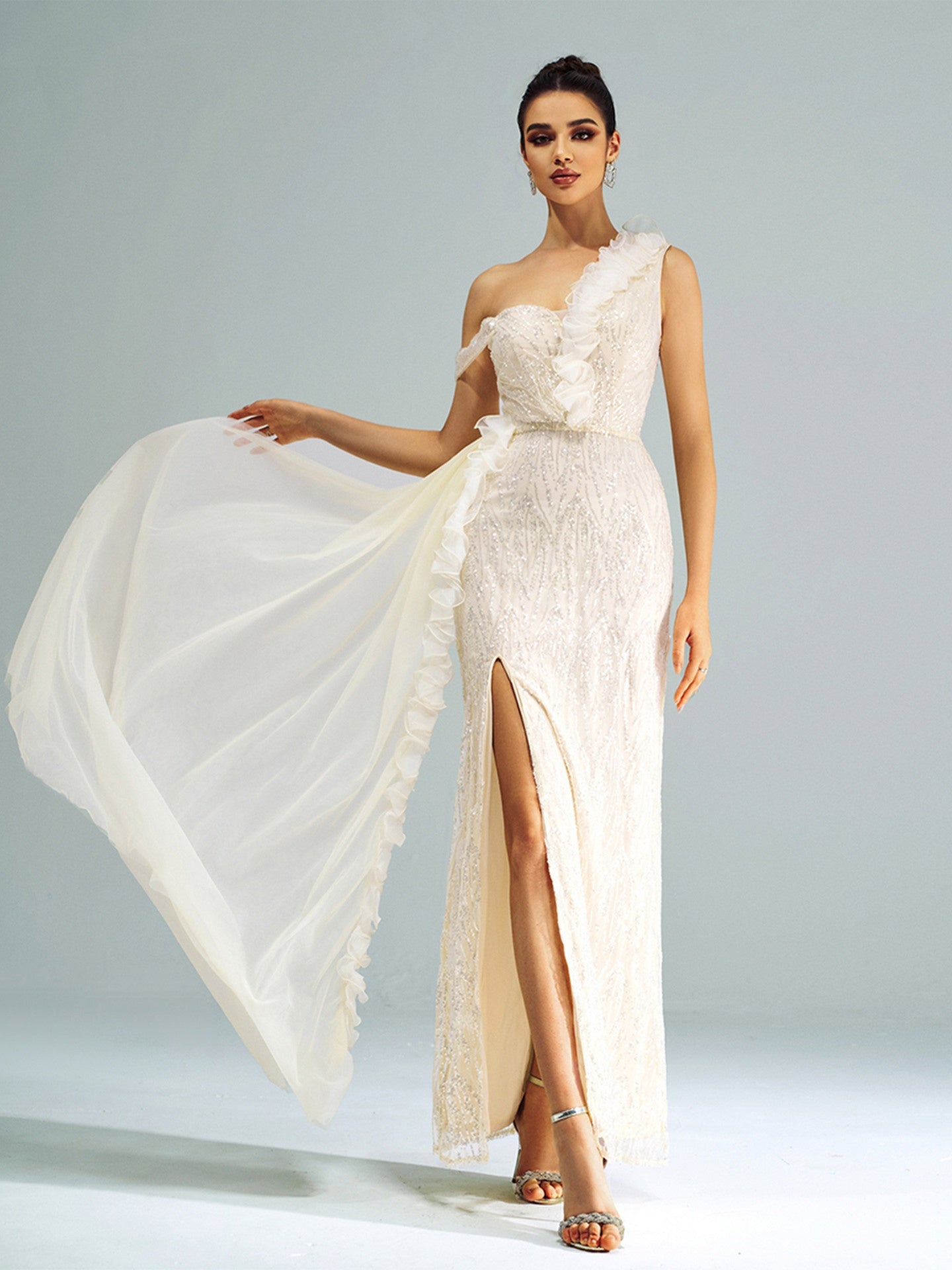 Sleeveless Asymmetric Neck Banquet Evening Gown