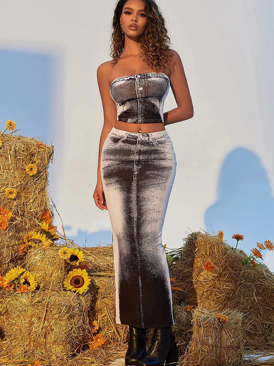 Slim Fit Hip-hugging Slit Skirt Suit Set