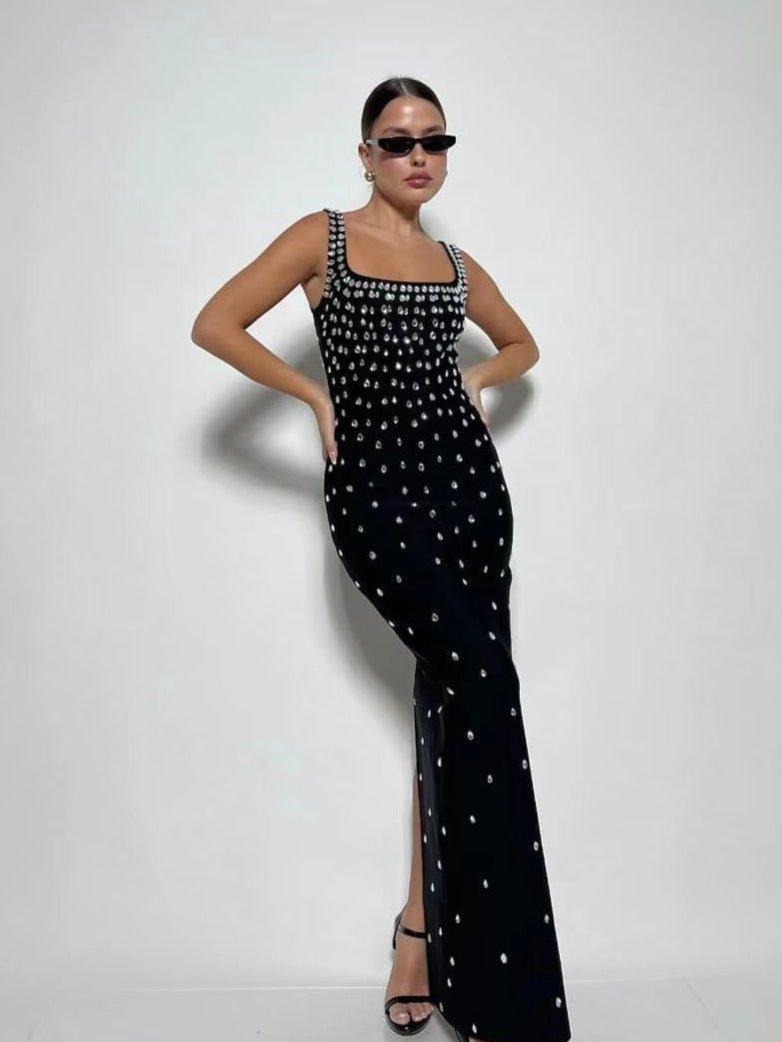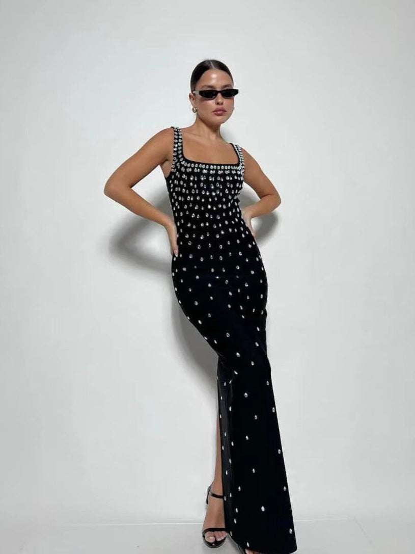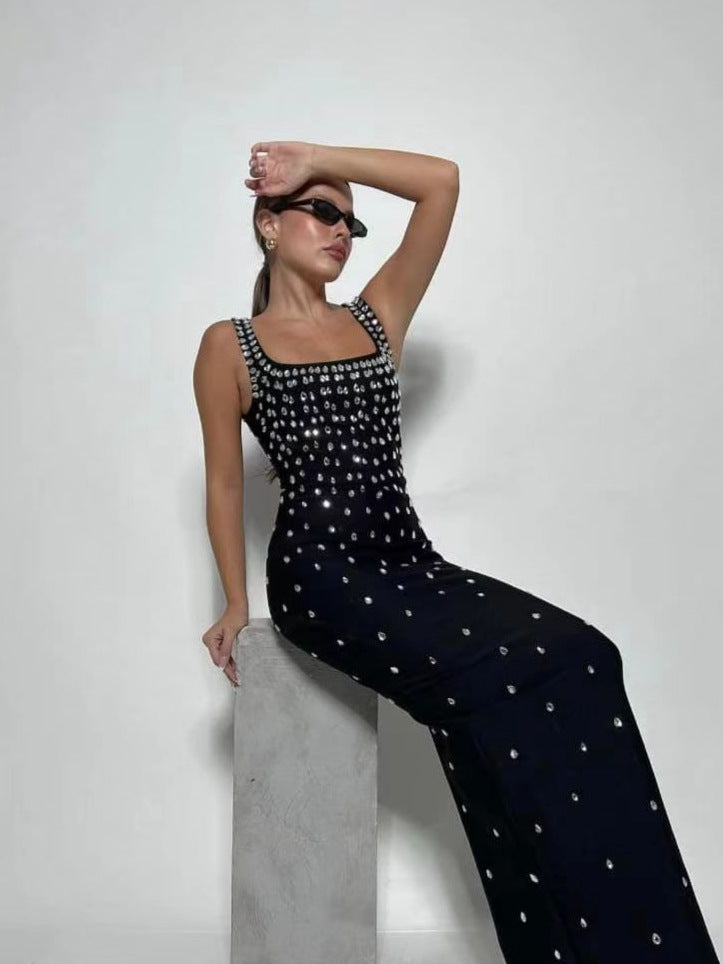 This Slim Fit Rhinestone Embellished Bandage Dress is a paragon of luxury and style. The body - hugging bandage design accentuates your curves, while the exquisitely placed rhinestones add a touch of opulence. Perfect for upscale parties, it combines modern fashion with a glamorous edge, ensuring you'll be the center of attention.