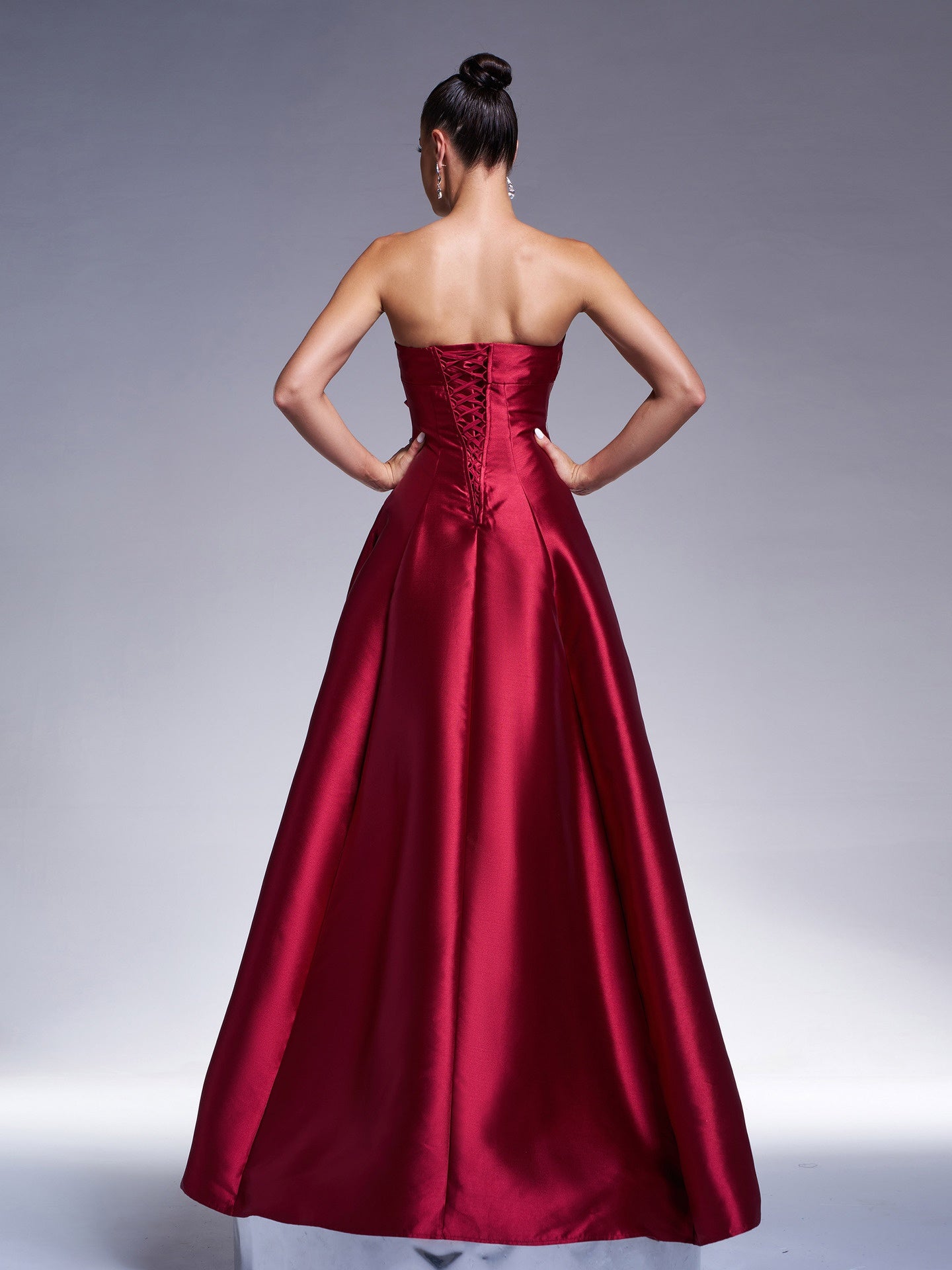 This exquisite gown features a beautifully fitted waist that accentuates your silhouette, while the off-shoulder design adds a touch of glamour. Crafted from high-quality fabric, it flows gracefully to the floor, making it perfect for any formal event. Elevate your evening look with this timeless piece that ensures all eyes are on you.