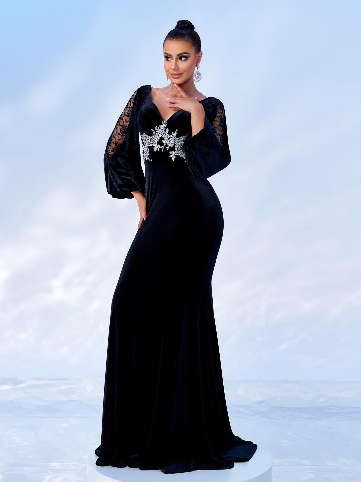 This elegant V-neck Velvet Floral Maxi Dress showcases a captivating blend of sophistication and charm. Its rich velvet fabric embraces a body-skimming silhouette, adorned with intricate floral prints that dance across the fabric, evoking a romantic aura. Perfect for special occasions, it exudes timeless elegance.