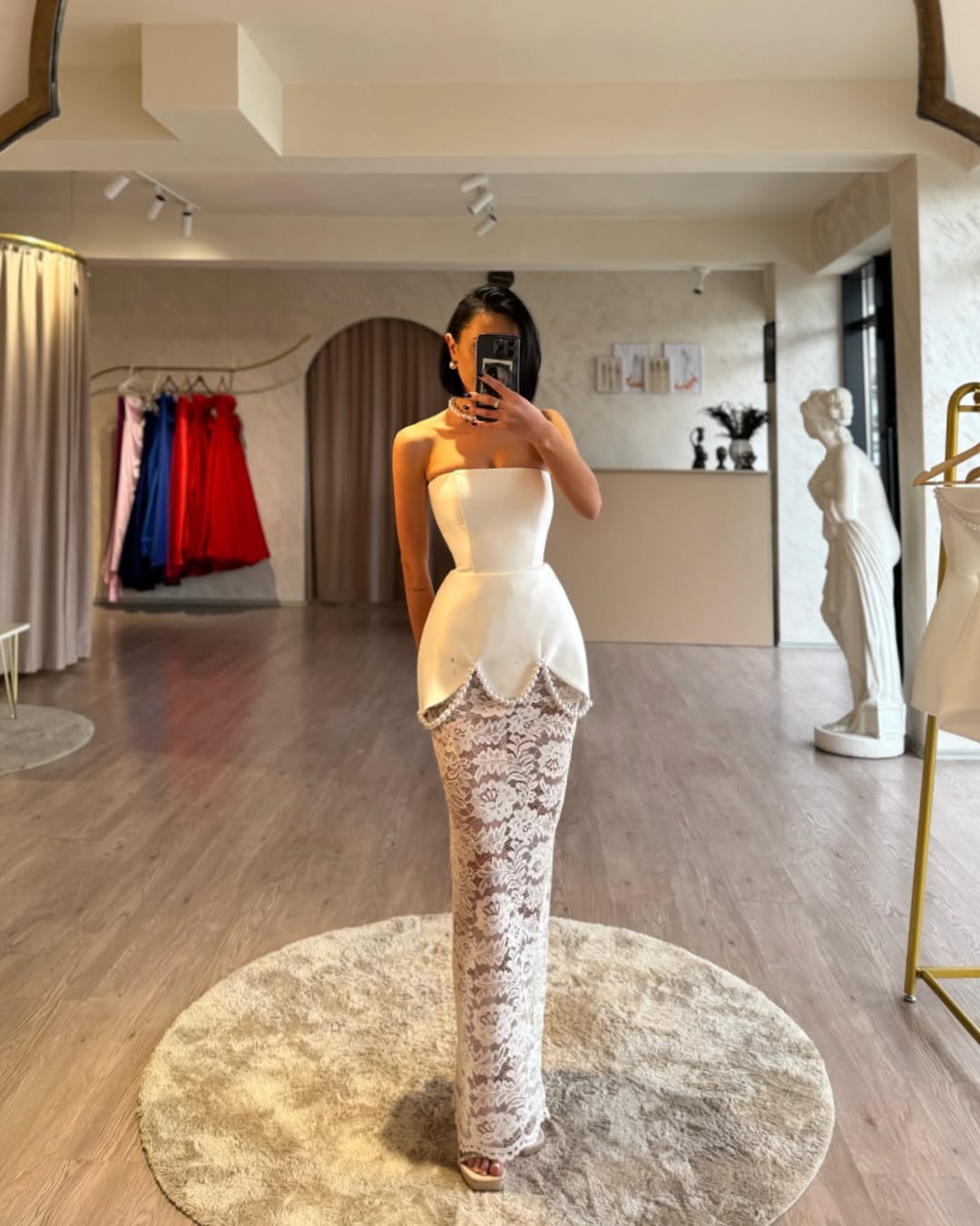 This YS Strapless Lace - detailed Pearl Trim Gown is a paragon of elegance. The strapless bodice is sleek and tailored, gracefully highlighting the collarbone and shoulders. The lower part features an intricately designed lace skirt that exudes a sense of romance and femininity. Delicate pearl trims adorn the junction of the bodice and skirt, adding a luxurious touch. Ideal for high - end events like galas or weddings, this gown combines modern sophistication with classic charm, ensuring the wearer makes a lasting impression.